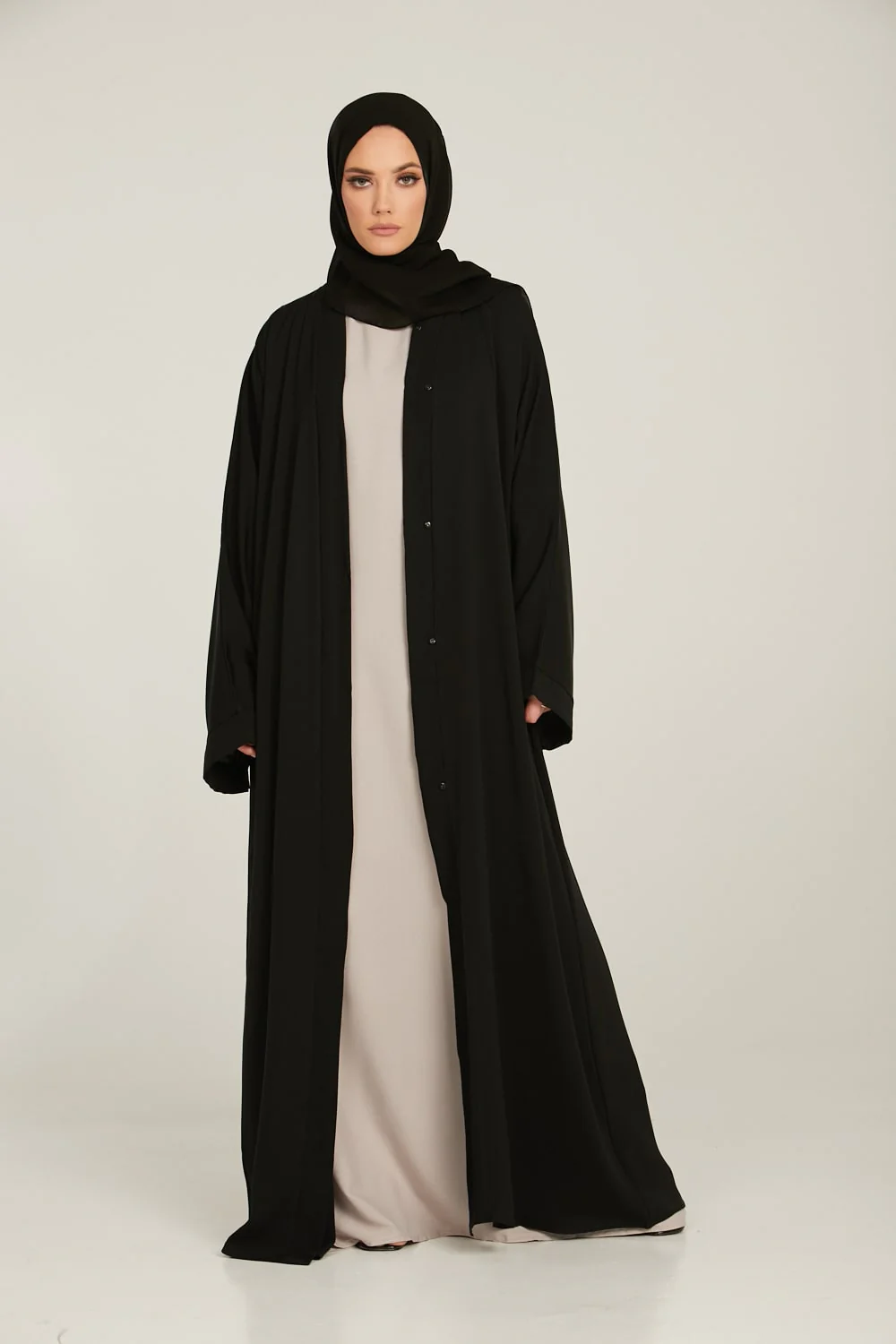 -70%Classic Black Open Abaya - Slim Sleeve—