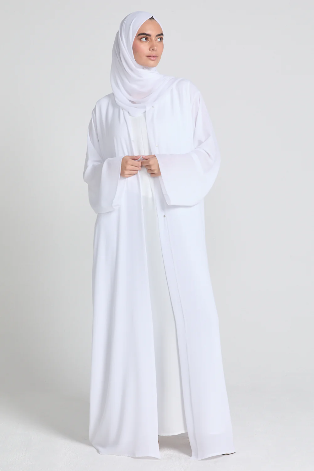 Stay stylish with ease in our Double Chiffon Open Abaya. Lightweight, breathable, and soft, it’s perfect for any occasion, whether you’re covering up on holiday or adding a graceful touch to your outfit. Featuring stud fasteners, you can wear it open or closed for effortless styling. Pair it with one of our inner slip dresses for a more elegant look or throw it over any outfit for instant chic.