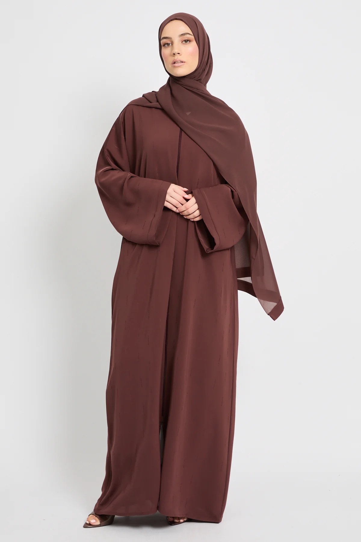 Premium Semi-Closed Abaya with Zip and Pockets – Espresso Cocoa