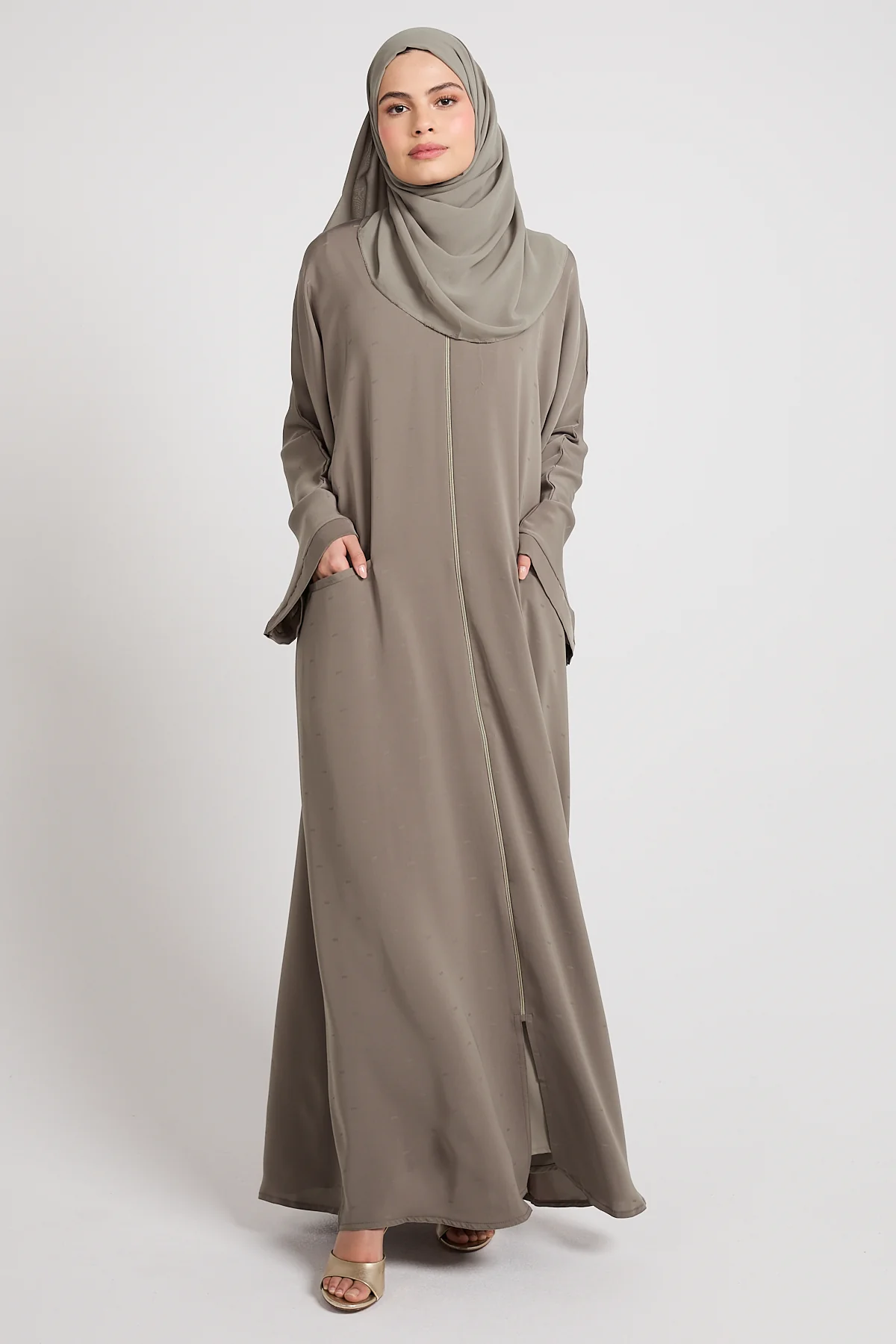 Premium Semi-Closed Abaya with Zip and Pockets – Olive Taupe