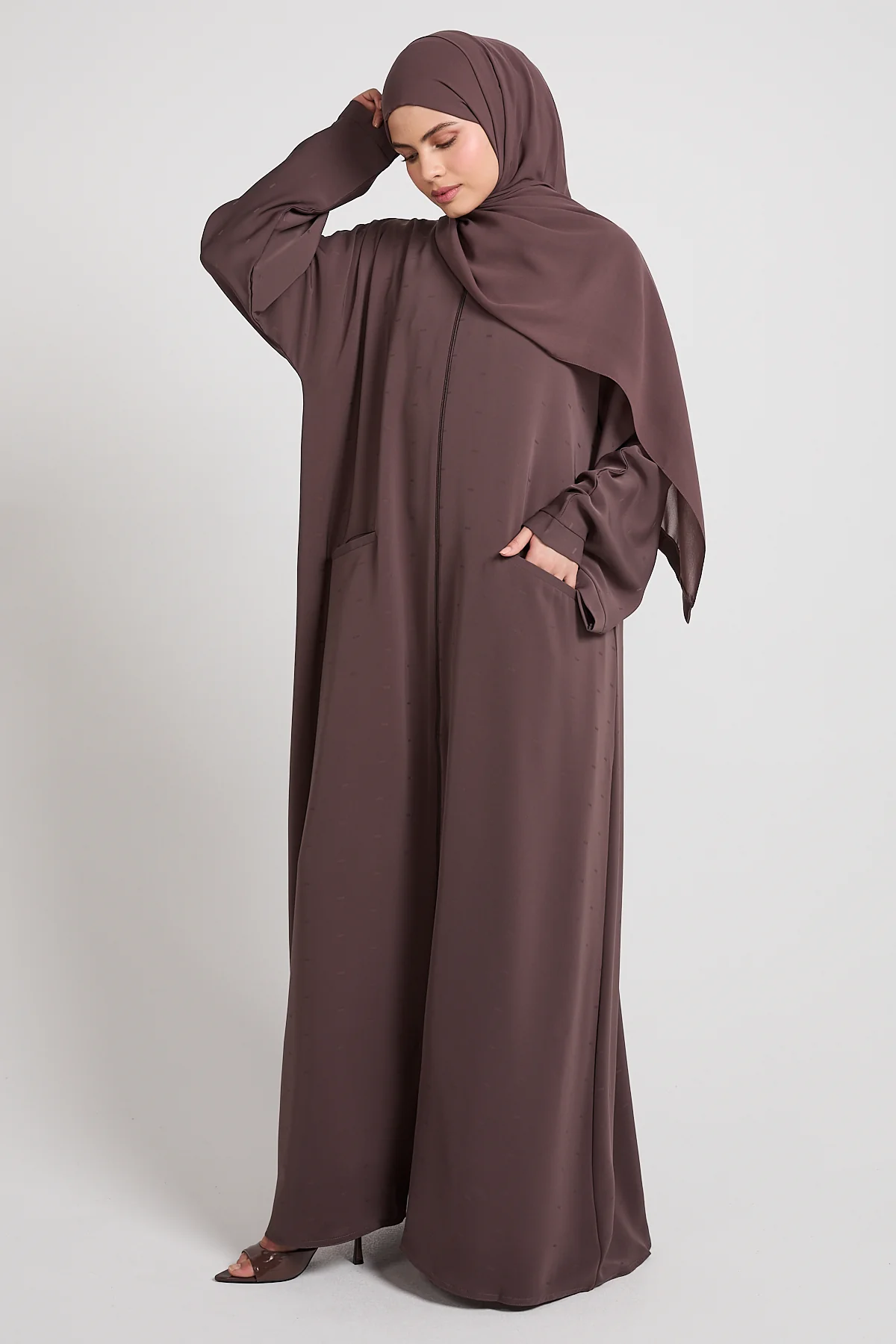 Premium Semi-Closed Abaya with Zip and Pockets – Plum Truffle