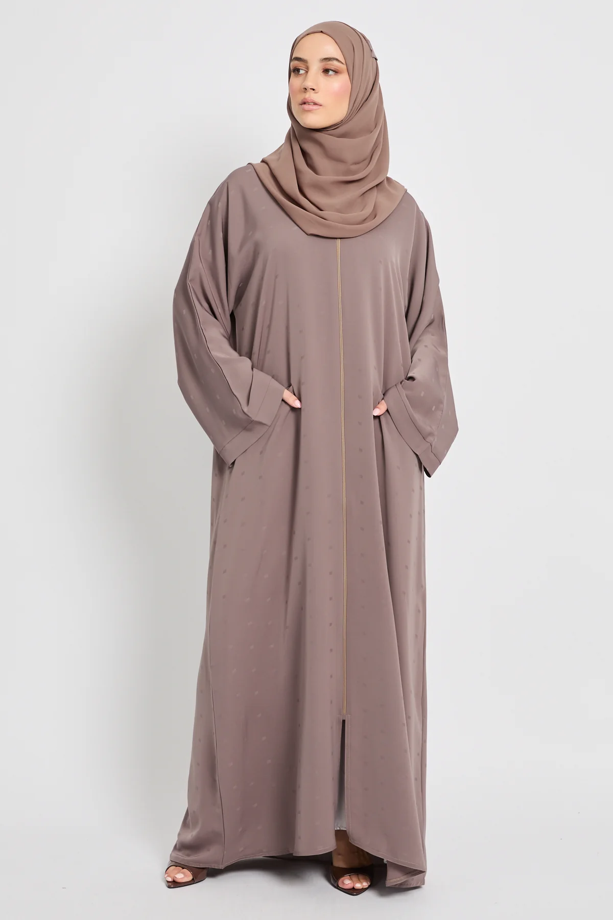 Premium Semi-Closed Abaya with Zip and Pockets – Taupe